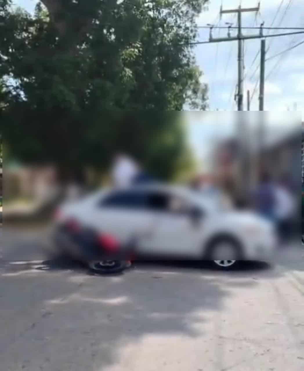 - El percance se registró durante la tarde de ayer viernes, cuando un motociclista se desplazaba por la avenida Pedro Méndez de esta localidad; pero cuando se encontraba a la altura del entronque con la calle Dos de abril, el torpe conductor de un automóvil lo embistió, ocasionando que saliera disparado y terminara arriba del carro compacto.