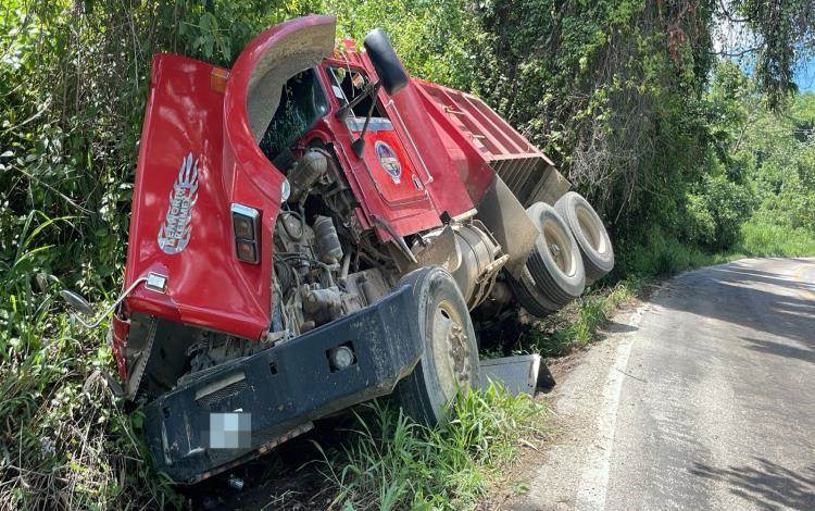 - El conductor de este mastodonte, confesó que fueron minutos que se le hicieron eternos y es que a medida que bajaba por la carretera federal Palenque-Ocosingo, su volteo no respondía a los frenos.