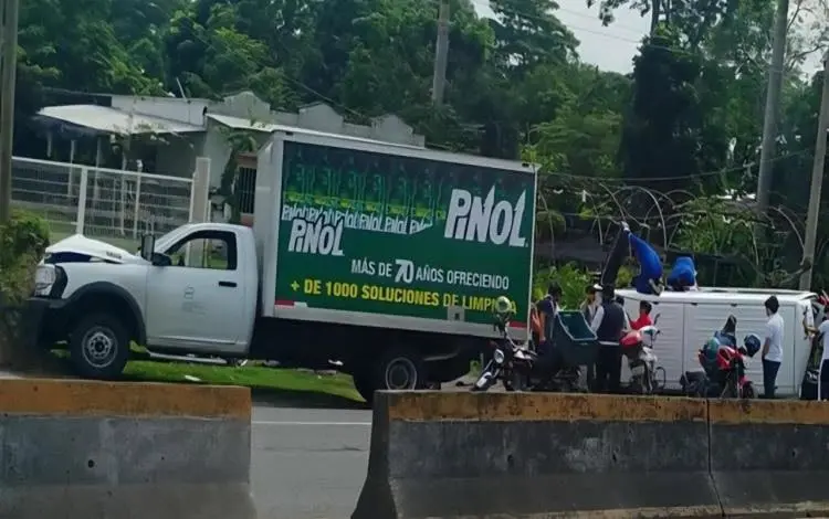 Uno de los pasajeros narró que el chofer de la combi se había detenido para recoger un pasaje, de pronto el conductor de la camioneta con productos de limpieza intentó rebasar para no estrellarse por alcance contra la combi, pero alcanzó a golpearla por un costado provocando la volcadura.
