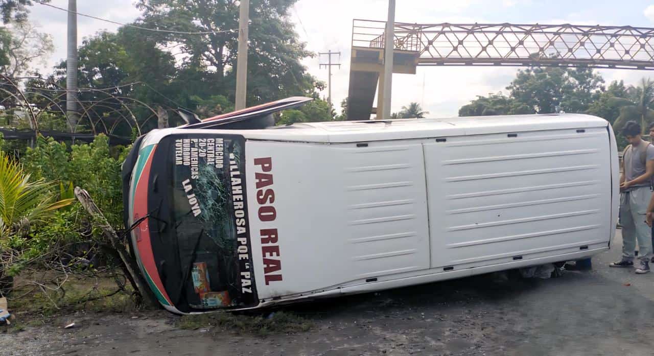 - Al menos 9 pasajeros resultaron lesionados la tarde de ayer, al registrarse un choque y volcadura en la carretera Villahermosa-Frontera a la altura del kilómetro 6 entre una camioneta y una combi de la ruta Paso Real. Todo indica que el chofer de la camioneta particular fue el responsable del percance y fue detenido en el lugar.
