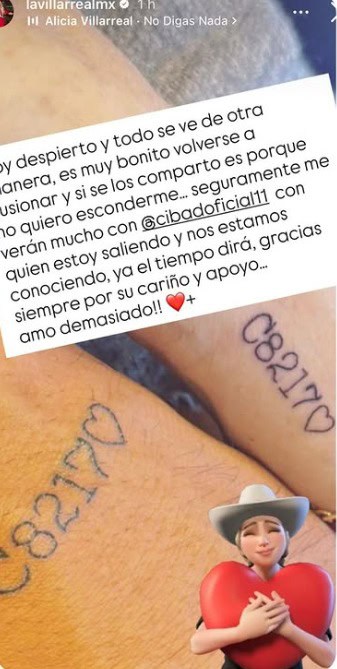 El romance quedó sellado con un gesto simbólico: ambos compartieron una imagen de sus brazos tatuados con el mismo diseño, un código "C8217" acompañado de un corazón.
