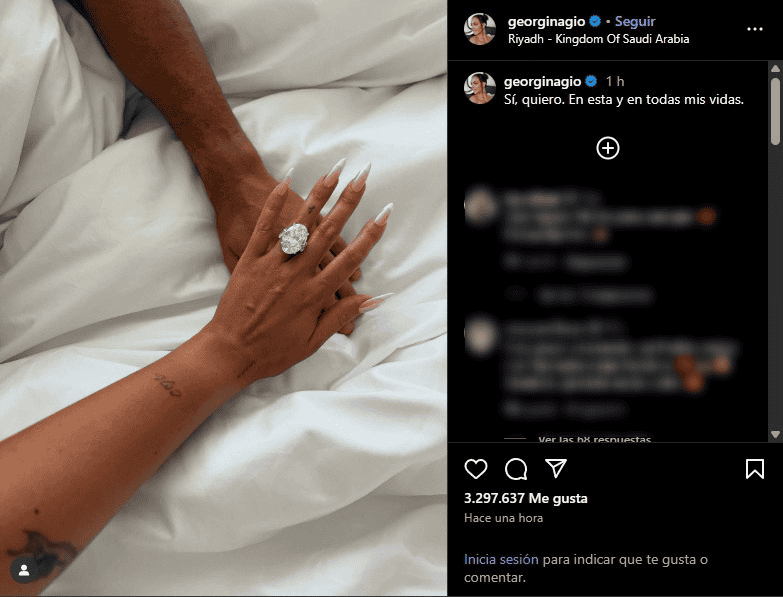 La noticia fue confirmada por la propia Georgina, quien compartió una emotiva fotografía en redes sociales, mostrando la espectacular joya en la mano de Cristiano, junto al mensaje: