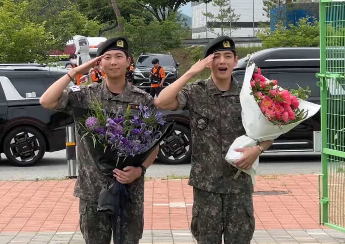 La agencia BigHit Music pidió a los fans evitar acudir al lugar de baja para prevenir aglomeraciones, aunque alentó a enviarles mensajes de bienvenida. Jimin y Jungkook también están próximos a concluir su servicio el miércoles 11 de junio.