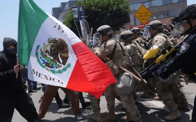 Las imágenes que circulan muestran actos de violencia por parte de miembros de la Guardia Nacional contra personas migrantes. Esta fuerza fue desplegada por orden del presidente Donald Trump para intentar sofocar las protestas que se han desatado en respuesta a las redadas.