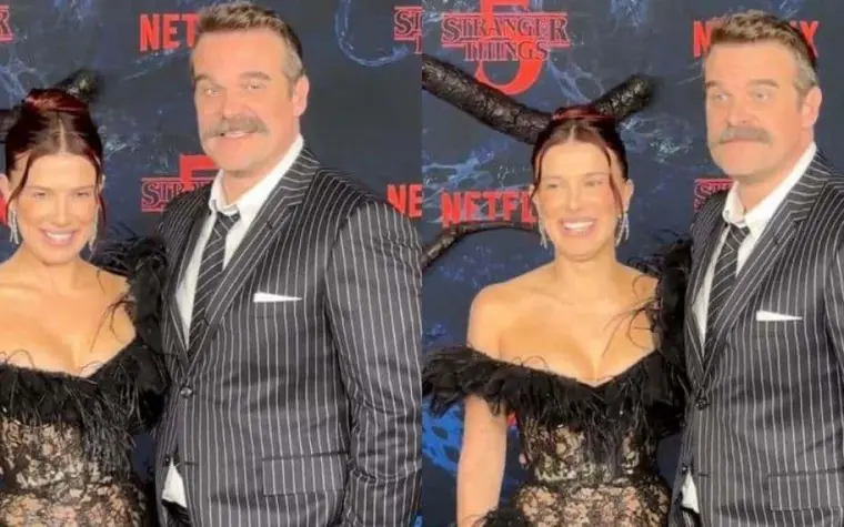 El instante más comentado fue cuando Harbour, con una sonrisa cálida, besó en la mejilla a Millie, gesto que muchos interpretaron como una clara señal de reconciliación y desmentido a los rumores de distanciamiento, especialmente tras las tensiones que se habrían intensificado meses antes del estreno.