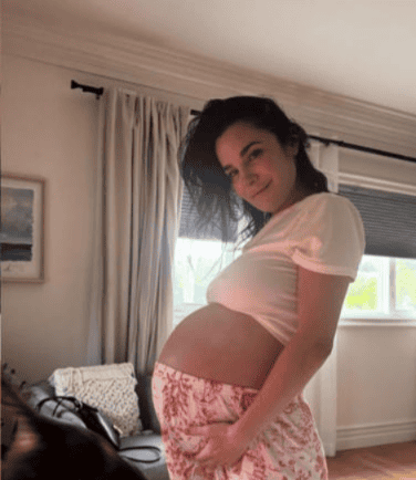 En la imagen, Higareda posa con un traje de baño negro y una gran sonrisa, mostrando con orgullo su avanzado embarazo.