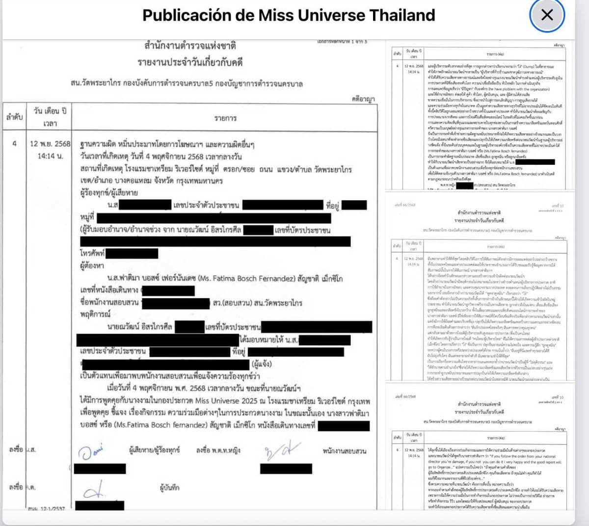Nawat Itsaragrisil, presidente del Comité Organizador de la 74ª edición de Miss Universo en Tailandia, presentó una denuncia penal contra la mexicana Fátima Bosch Fernández, Miss Universo 2025, por supuesta difamación, semanas después de que Bosch lo acusara públicamente de haberla violentado en un incidente durante el certamen celebrado el 4 de noviembre de 2025.