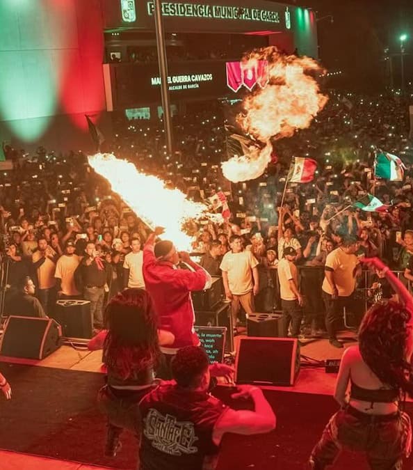 Al menos 15 personas resultaron lesionadas tras un cortocircuito durante el concierto del rapero Santa Fe Klan , quien se presentó en el municipio de García, Nuevo León, para dar "El Grito" de Independencia.