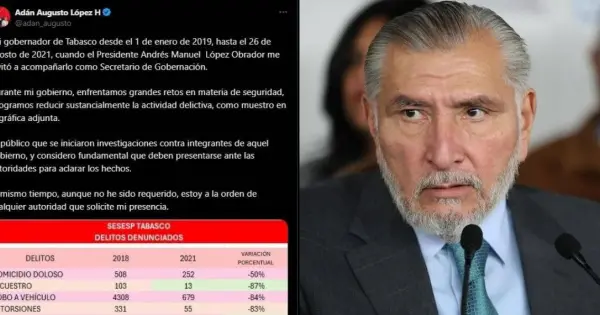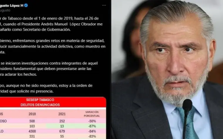 Sin mencionar directamente al exfuncionario, Adán Augusto reconoció que existen indagatorias en curso contra personas que formaron parte de su equipo.