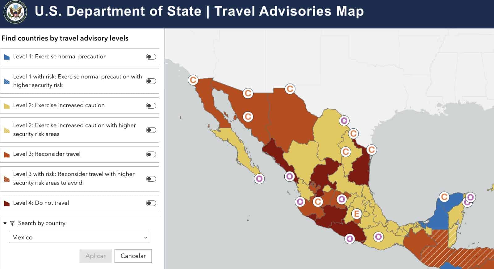 El gobierno estadounidense divide a las entidades mexicanas en cuatro niveles: