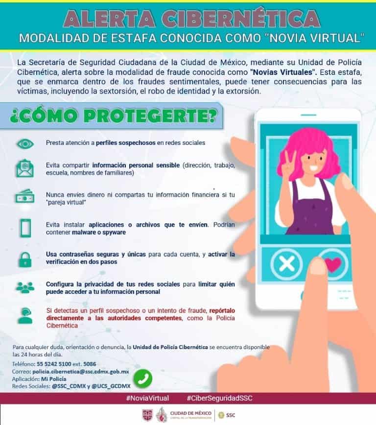 La Secretaría de Seguridad Ciudadana de la Ciudad de México (SSC-CDMX), a través de su Unidad de Policía Cibernética, lanzó una advertencia urgente a la población sobre una nueva modalidad de fraude sentimental conocida como "novias virtuales".