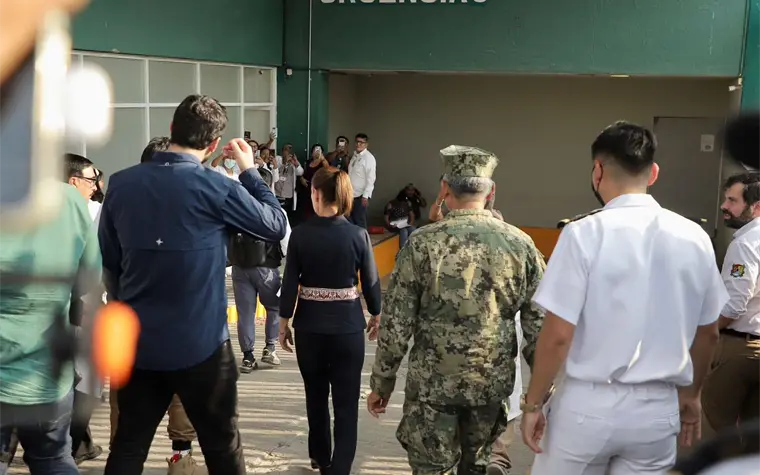 - La primera mandataria estuvo acompañada del secretario de Marina, almirante Raymundo Pedro Morales Ángeles; el subsecretario de Derechos Humanos, Población y Migración de la Secretaría de Gobernación, Félix Arturo Medina Padilla; el director general del IMSS Bienestar, Alejandro Svarch Pérez; y el director general del IMSS, Zoé Robledo Aburto.