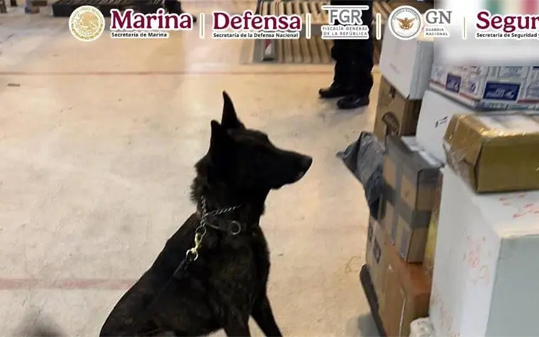 Proveniente de una empresa ubicada en un país asiático, el cual, al ser sometido a revisión mediante equipos de rayos X y con el apoyo del ejemplar canino "Néstor", del área de centros tácticos de la Aduana, marcó positivo a posible droga.