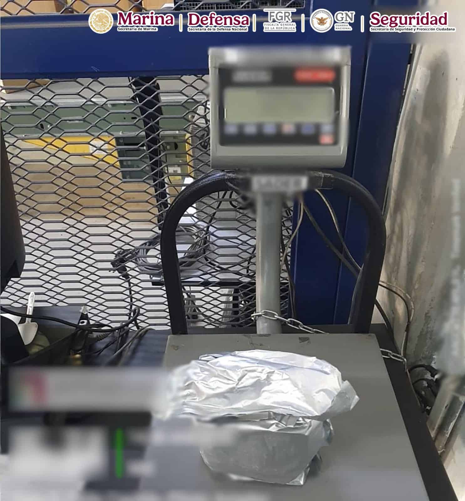 Elementos de la Secretaría de Marina (Semar) a través de la Armada de México, Secretaría de Seguridad y Protección Ciudadana (SSPC), Fiscalía General de la República (FGR), Secretaría de la Defensa Nacional (Defensa), Guardia Nacional (GN), junto con personal de Aduanas, aseguraron un paquete con aproximadamente un kilo de fentanilo.