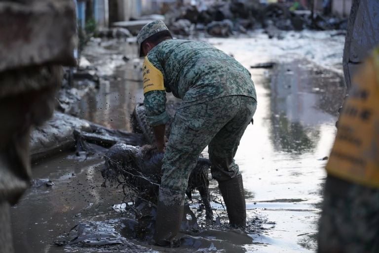 El secretario de Marina, Raymundo Pedro Morales, informó que en Poza Rica se desplegaron 3,528 elementos de distintas dependencias del gobierno federal y local, apoyados por más de 190 máquinas para la limpieza de calles y viviendas, así como recorridos de vigilancia para prevenir vandalismo.