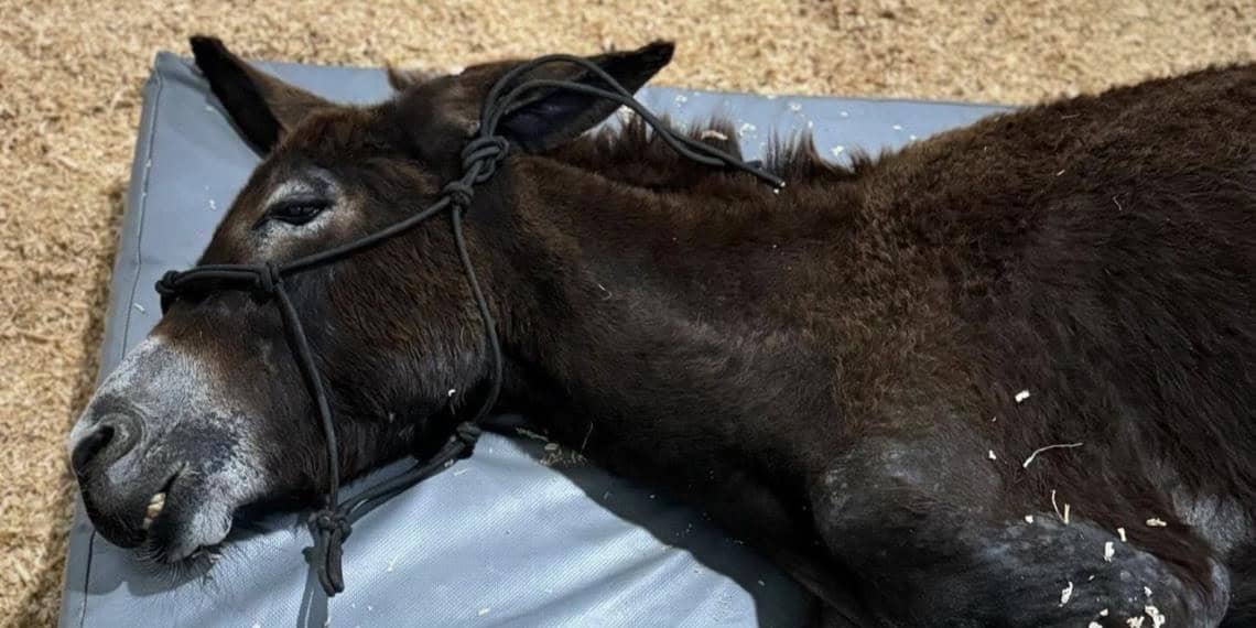 “A esta burrita un psico*pat* le quemó la pata con gasolina por meterse a su terreno. Los que la ayudaron en ese momento decidieron amputarla, aunque no fue en las mejores condiciones.