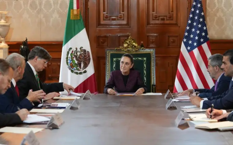 - La presidenta Claudia Sheinbaum Pardo sostuvo una reunión de más de dos horas en Palacio Nacional con el subsecretario de Estado de Estados Unidos, Christopher Landau, y el embajador estadounidense en México, Ronald Johnson, para discutir temas de la agenda bilateral entre ambos países.