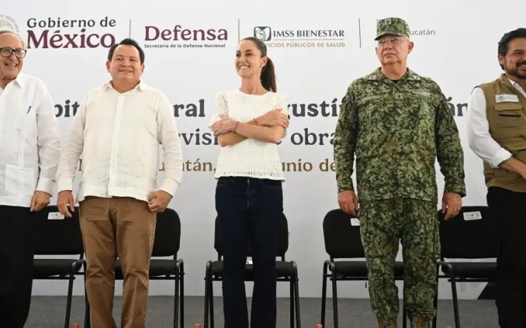 Acompañaron a la Presidenta, el secretario de la Defensa Nacional, general Ricardo Trevilla Trejo; el director general del IMSS, Zoé Robledo Aburto; el director general de BIRMEX, Carlos Alberto Ulloa Pérez; el subsecretario de Integración Sectorial y coordinador de Servicios de Atención Médica, Eduardo Clark García Dobarganes; el subsecretario de Bienestar, Jesús Valencia Guzmán; el secretario técnico de la Presidencia de la República y coordinador general de Programas para el Bienestar, Carlos Torres Rosas; y el director del Hospital General Agustín O´Horán del IMSS Bienestar, Juan Carlos Arana Reyes.