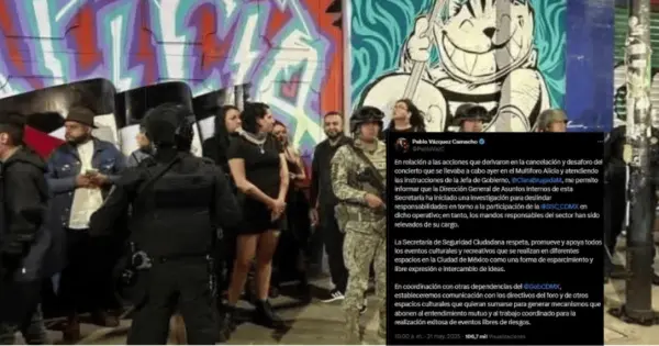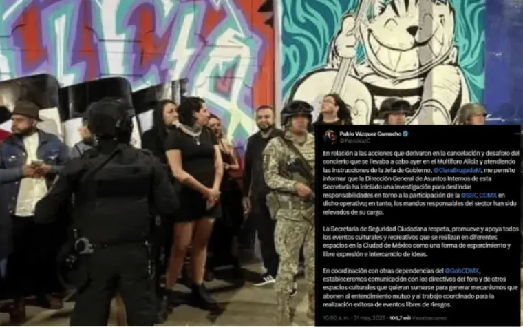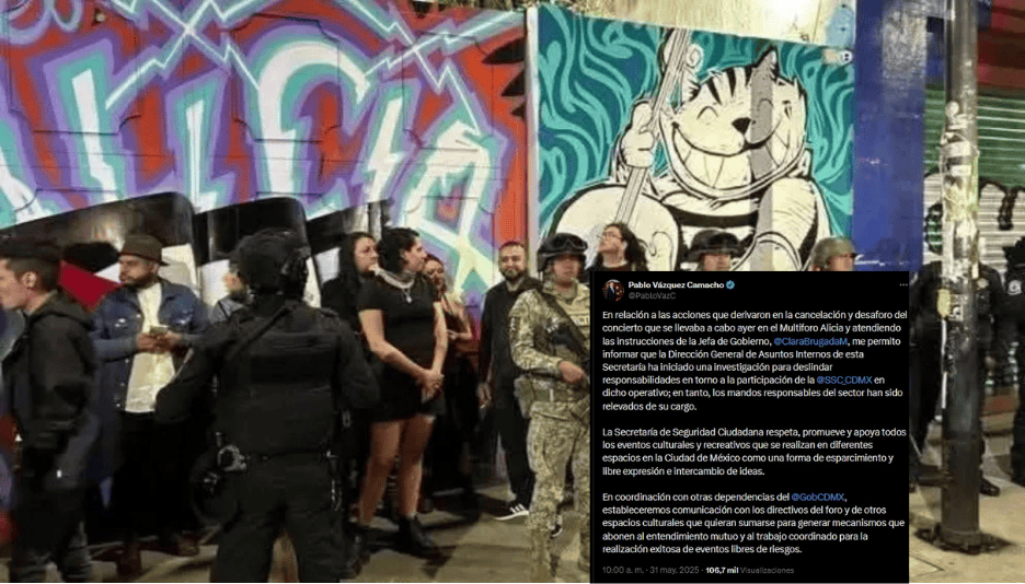 El desalojo del Multiforo Alicia durante el concierto del músico español Fermín Muguruza ha generado una fuerte polémica en la Ciudad de México. La Secretaría de Seguridad Ciudadana (SSC) informó que ha iniciado una investigación interna para esclarecer los hechos y deslindar responsabilidades, además de remover a los mandos responsables del operativo.