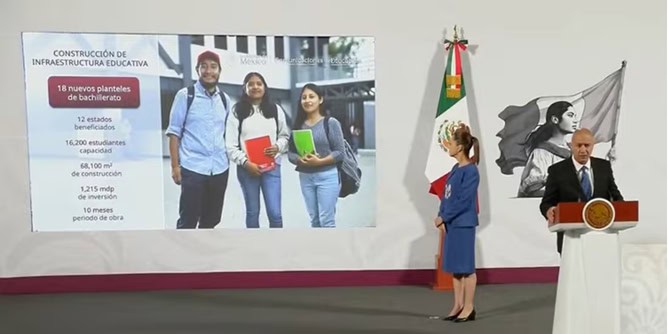 La presidenta anuncia la construcción de nuevos planteles de bachillerato.