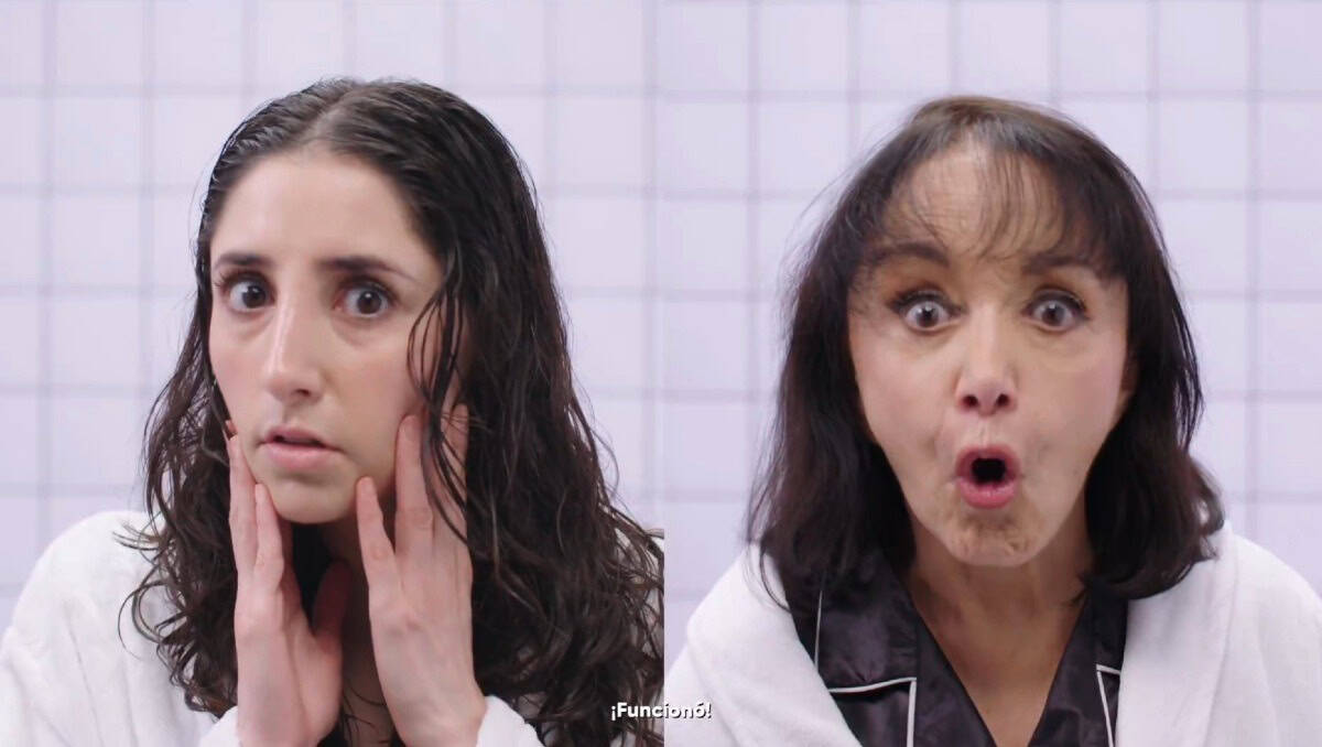 El video, titulado "Son una misma", muestra a María Antonieta recibiendo un paquete misterioso con un líquido similar al que aparece en el thriller. Tras aplicarlo, aparece su versión joven, interpretada por Montes de Oca, dando paso a una secuencia llena de humor, guiños nostálgicos y el característico "¡Fíjate, fíjate, fíjate!".