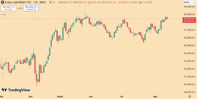 El índice S&P/BMV IPC, principal referencia de la Bolsa Mexicana de Valores, cayó 0.34% para ubicarse en 58,477.57 puntos.