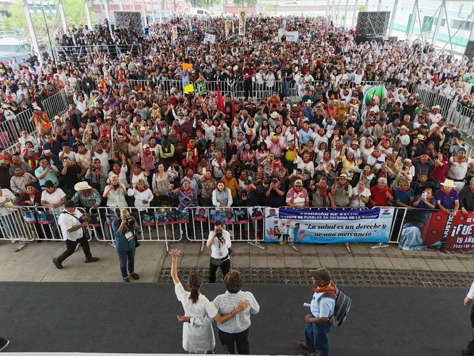 Horas más tarde, inauguró el Hospital General Francisco Altamirano Núñez, en un evento simbólico en el que recibió el paliacate rojo por parte de integrantes del Frente de Pueblos en Defensa de la Tierra (FPDT).