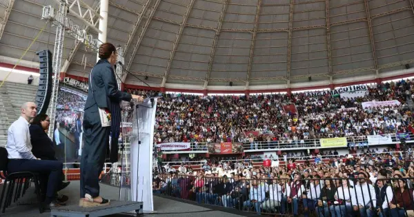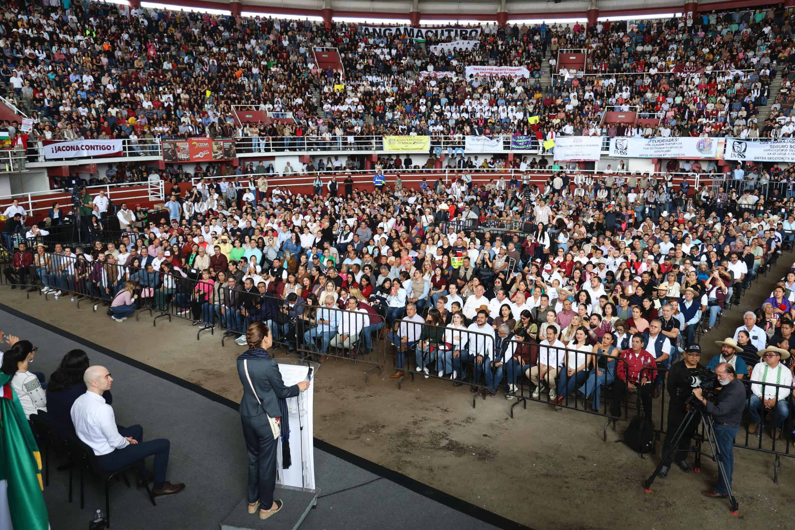 "Hace menos de un mes, o quizá un mes, se dio una noticia que no solamente cimbró a México, sino al mundo entero: En México, en 6 años, salieron de la pobreza 13.5 millones de mexicanas y de mexicanos, histórico. Se distribuyó la riqueza. Dejamos de ser uno de los países más desiguales del mundo, es decir, dejamos de ser un país en donde las brechas entre los más pobres y los más ricos eran las más amplias del mundo, a ser el país con menos desigualdad del continente, solamente debajo de Canadá. Es decir, se redujo la pobreza distribuyendo la riqueza en nuestro país, algo histórico. "Todavía hay mucho por hacer, mucho, porque no queremos —y luchamos por ello todos los días— que haya una sola familia mexicana en pobreza, pero vamos avanzando, es el momento en donde el porcentaje de personas en pobreza en el país es el más bajo de toda la historia de México, menos del 30 por ciento. Eso es triunfo de la Cuarta Transformación de la Vida Pública y de un hombre que sigue siendo un honor nombrar: del Presidente Andrés Manuel López Obrador", resaltó ante un lleno total en el Pabellón Don Vasco.