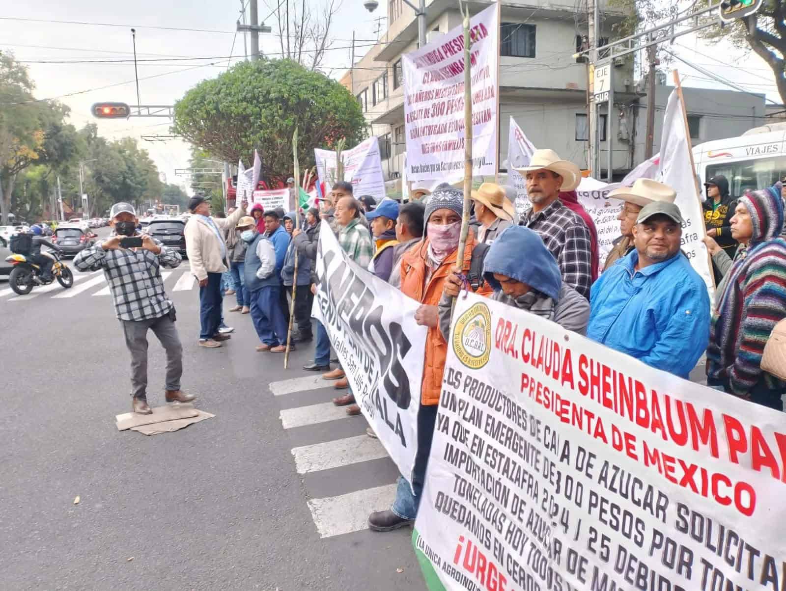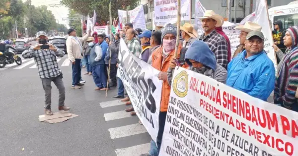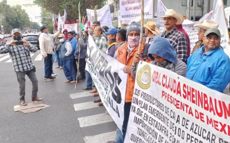 Productores cañeros de al menos nueve estados mantienen bloqueos carreteros y protestas en la Ciudad de México para exigir al gobierno federal frenar la importación de azúcar y aplicar un plan emergente que rescate al sector ante la caída de precios.