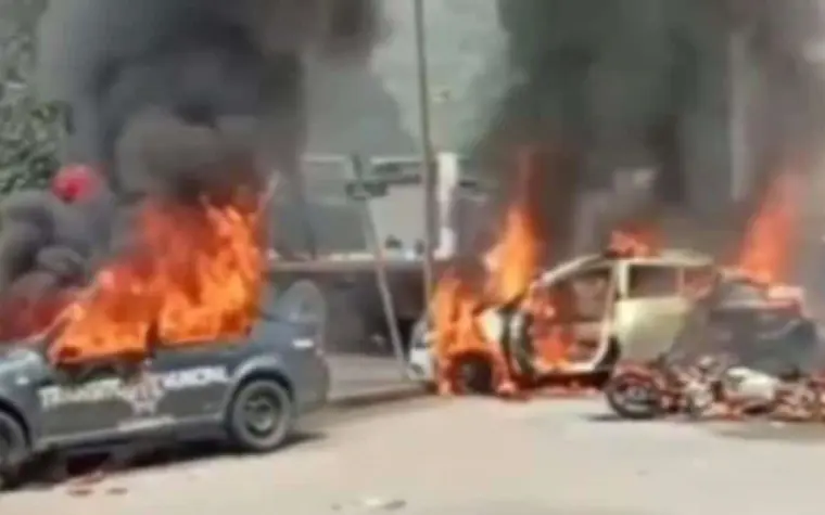 Encapuchados y visiblemente molestos, los manifestantes también retuvieron y despojaron de su uniforme a dos elementos de vialidad como forma de reclamo. Las imágenes del incendio, captadas por la ciudadanía, circularon rápidamente en redes sociales mostrando cómo las llamas consumían las unidades sin que los agentes intervinieran.