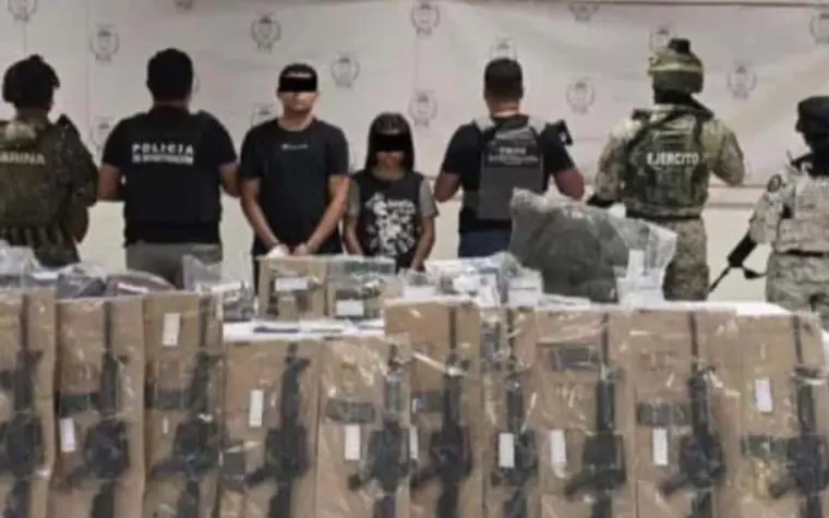 La fiscalía general del Estado de Quintana Roo informó la detención de ocho presuntos integrantes de un grupo criminal que pretendía establecerse en Playa del Carmen con un arsenal de armas largas, drogas y equipo táctico.