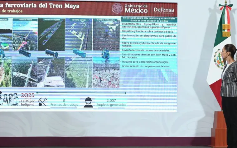Y al mismo tiempo, ya se está construyendo el Tren Maya de carga, se está yendo hacia Progreso", destacó en la conferencia matutina: "Las mañaneras del pueblo".
