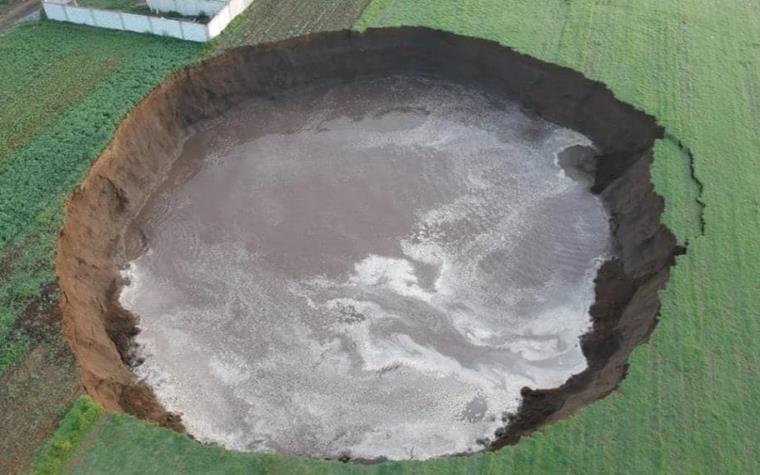 Según autoridades estatales y pobladores, durante la madrugada, el enorme cráter creció más debido a que hubo un desprendimiento de tierra.