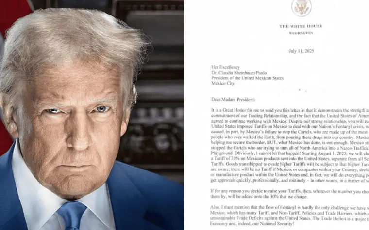 En una carta dirigida a la mandataria mexicana, Trump argumentó que la medida responde a lo que considera una falta de resultados por parte del gobierno mexicano para frenar la operación de cárteles y el tráfico de fentanilo hacia Estados Unidos.