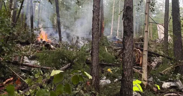 Los restos del avión fueron localizados a unos 15 kilómetros de Tynda, en una zona boscosa y de difícil acceso. Videos grabados desde el helicóptero de rescate muestran una columna de humo emergiendo entre árboles y llamas en lo que parecen ser los restos del fuselaje.