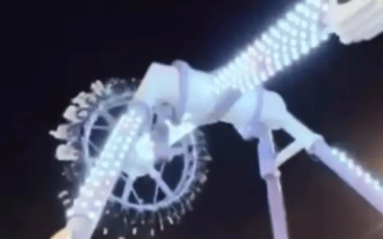 En las imágenes, se observa cómo el brazo principal de la estructura se parte en dos mientras el juego se encontraba en su punto más alto, lo que provocó que la base giratoria con los pasajeros se desplomara desde varios metros de altura.