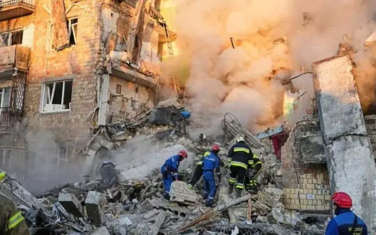 Right now in Kyiv, first responders are clearing the rubble of an ordinary residential building after a Russian strike. Another massive attack against our cities and communities. Killings again. Tragically, at least 8 people have already been confirmed dead. One of them is a... pic.twitter.com/aukkujC9ji