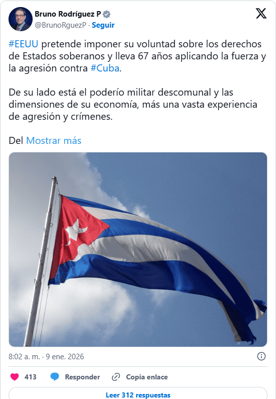 El canciller Bruno Rodríguez expresó este posicionamiento en redes sociales después de participar en un homenaje en Caracas a las víctimas de los bombardeos estadounidenses, entre ellas 32 militares y agentes de inteligencia cubanos que murieron durante la operación para capturar al presidente venezolano, Nicolás Maduro.