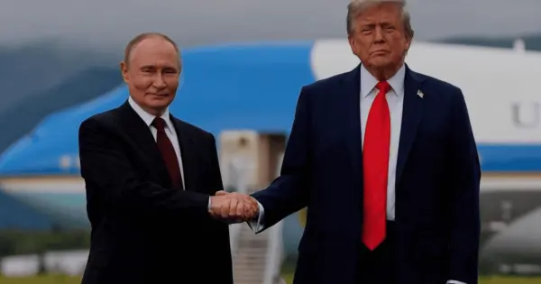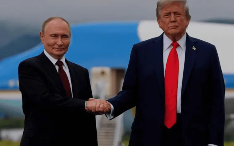 - El saludo fue cordial: se estrecharon las manos con firmeza, intercambiaron palabras y sonrisas, y compartieron una breve caminata sobre alfombras rojas ante una multitud que aplaudía el histórico momento. Posteriormente, posaron frente a una plataforma adornada con la leyenda "Alaska 2025" junto a aviones de combate.
