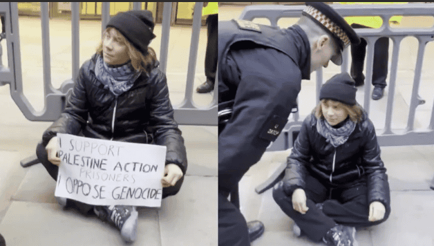 De acuerdo con un comunicado de las autoridades británicas, la joven de 22 años fue detenida por portar una pancarta en la que expresaba su rechazo a la Ley de Terrorismo del año 2000 y mostraba apoyo a los activistas, a quienes se refirió como "prisioneros".