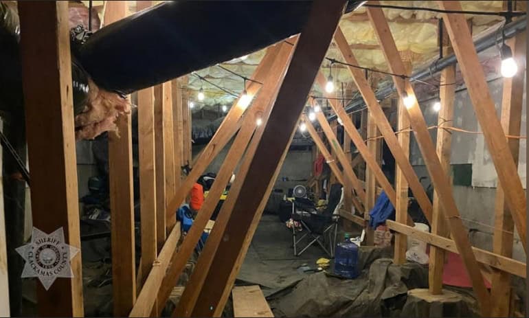 Un residente de un complejo de condominios en las inmediaciones de Happy Valley, a unos 24 kilómetros de Portland, reportó haber escuchado "ruidos extraños" durante varias semanas. Lo que encontró tras contactar a la policía fue un intruso viviendo en un espacio subterráneo del edificio, acondicionado como una vivienda informal.