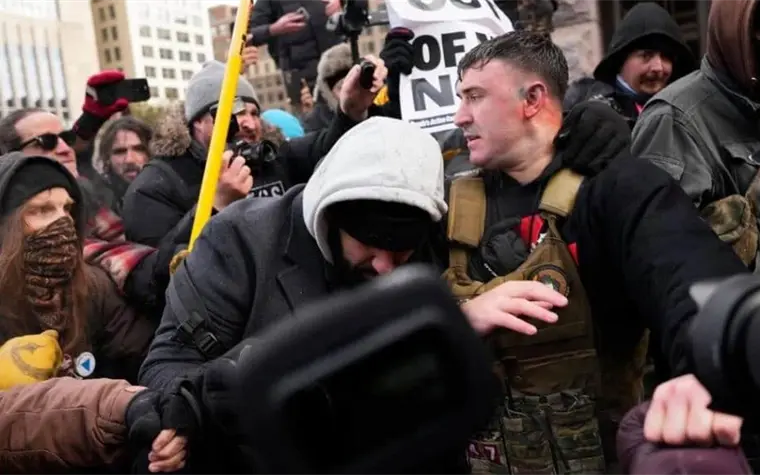 Jake Lang, quien organizó la manifestación a favor de ICE, resultó con moretones y rasguños en la cabeza tras abandonar la escena.