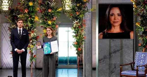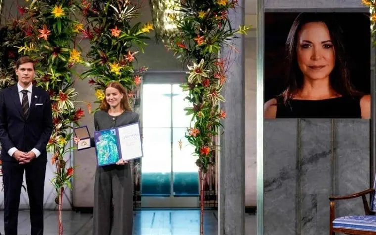 La hija de la dirigente opositora venezolana María Corina Machado recibió en Oslo el Premio Nobel de la Paz en representación de su madre, quien no pudo asistir por motivos de seguridad. Machado permanece en la clandestinidad desde enero, cuando fue detenida brevemente durante una protesta en Caracas.