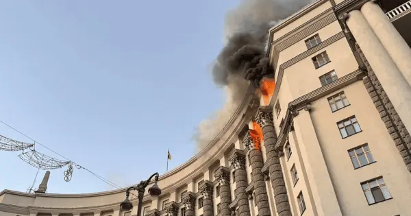 - Uno de los blancos fue la sede del gobierno en Kiev, donde se desató un incendio tras el impacto.