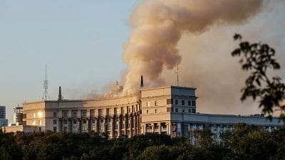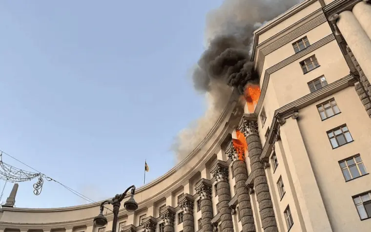 Ataque ruso a el edificio del Gabinete de Ministros en Kiev.
