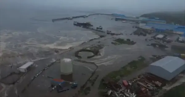 - En la costa de Kamchatka, las olas alcanzaron entre 3 y 4 metros de altura. La ciudad portuaria de Sévero-Kurilsk fue golpeada por tres olas, las cuales causaron inundaciones parciales, daños significativos a la infraestructura del puerto y arrastraron varias embarcaciones.