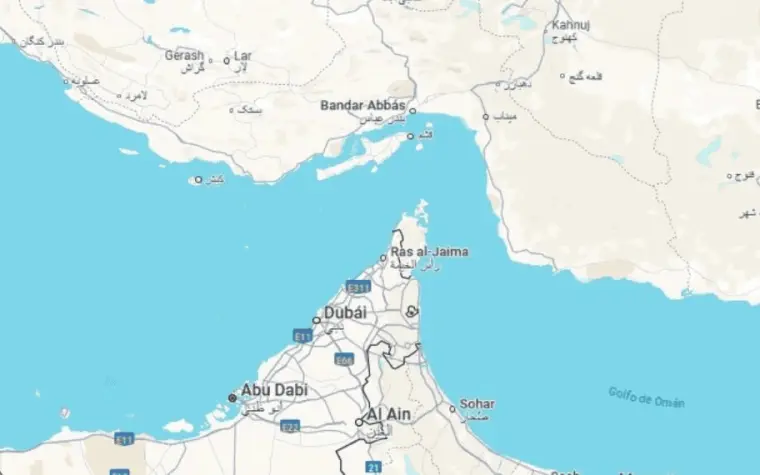 La parte norte del estrecho está bajo control iraní, mientras que la costa sur pertenece a Omán y a los Emiratos Árabes Unidos.