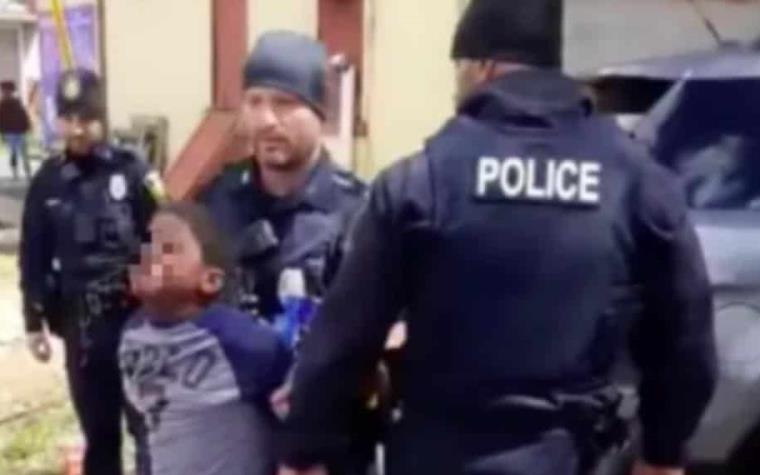 En la red social, tres policías detuvieron a un niño afroamericano de 8 años a quien señalaron había robado una bolsa de snacks de una tienda de conveniencia, incidente que llamó la atención.