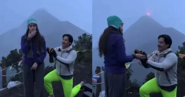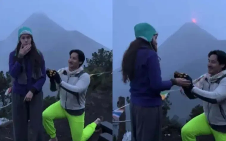 - Una propuesta de matrimonio se volvió viral después de que el volcán Acatenango entrara en erupción justo en el momento en que un joven le entregaba un anillo de compromiso a su pareja.