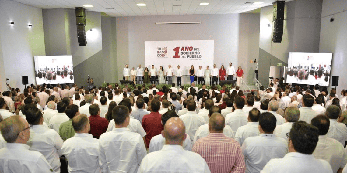 Destacando por ello, las intervenciones de Claudia Marcela Vélez Lanz, por parte del poder legislativo; y la alcaldesa de Huimanguillo, Mari Luz Velázquez Jiménez, a nombre de los 17 alcaldes en el marco del primer aniversario de ejercicio.